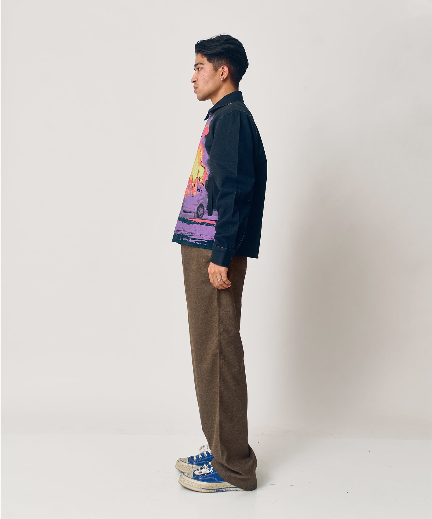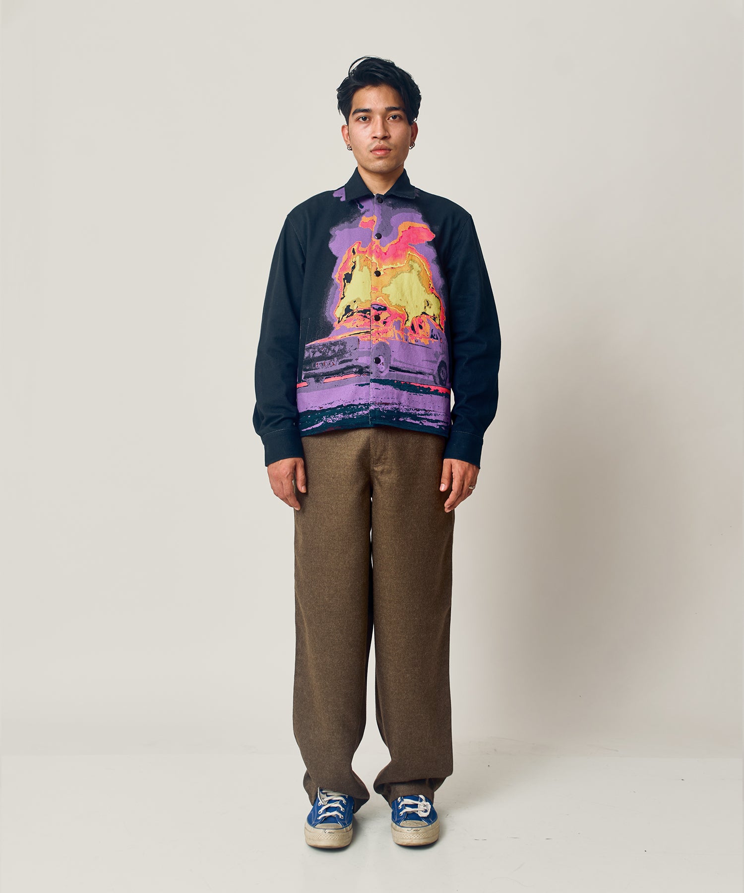 Our expertly crafted denim jacket is made from 100% denim fabric, featuring digitally printed designs. Enjoy the convenience of front and cuff closure with snap buttons, inner lining, and two side slit pockets. For the perfect fit and style, choose our denim jacket.