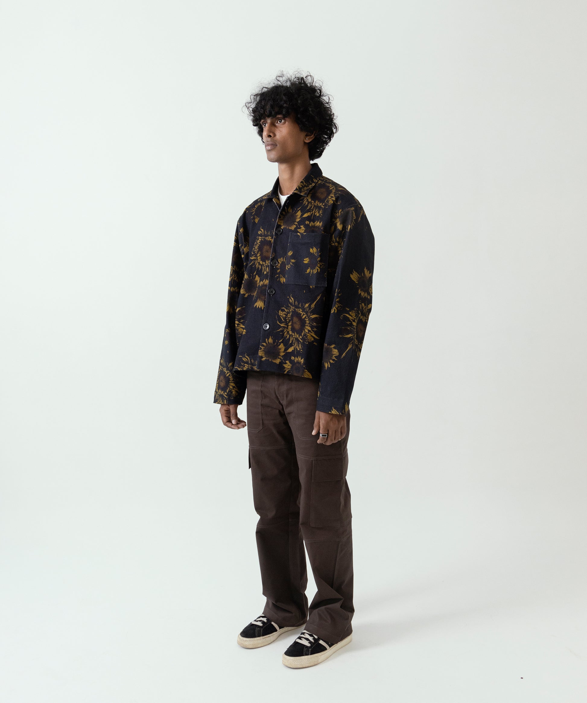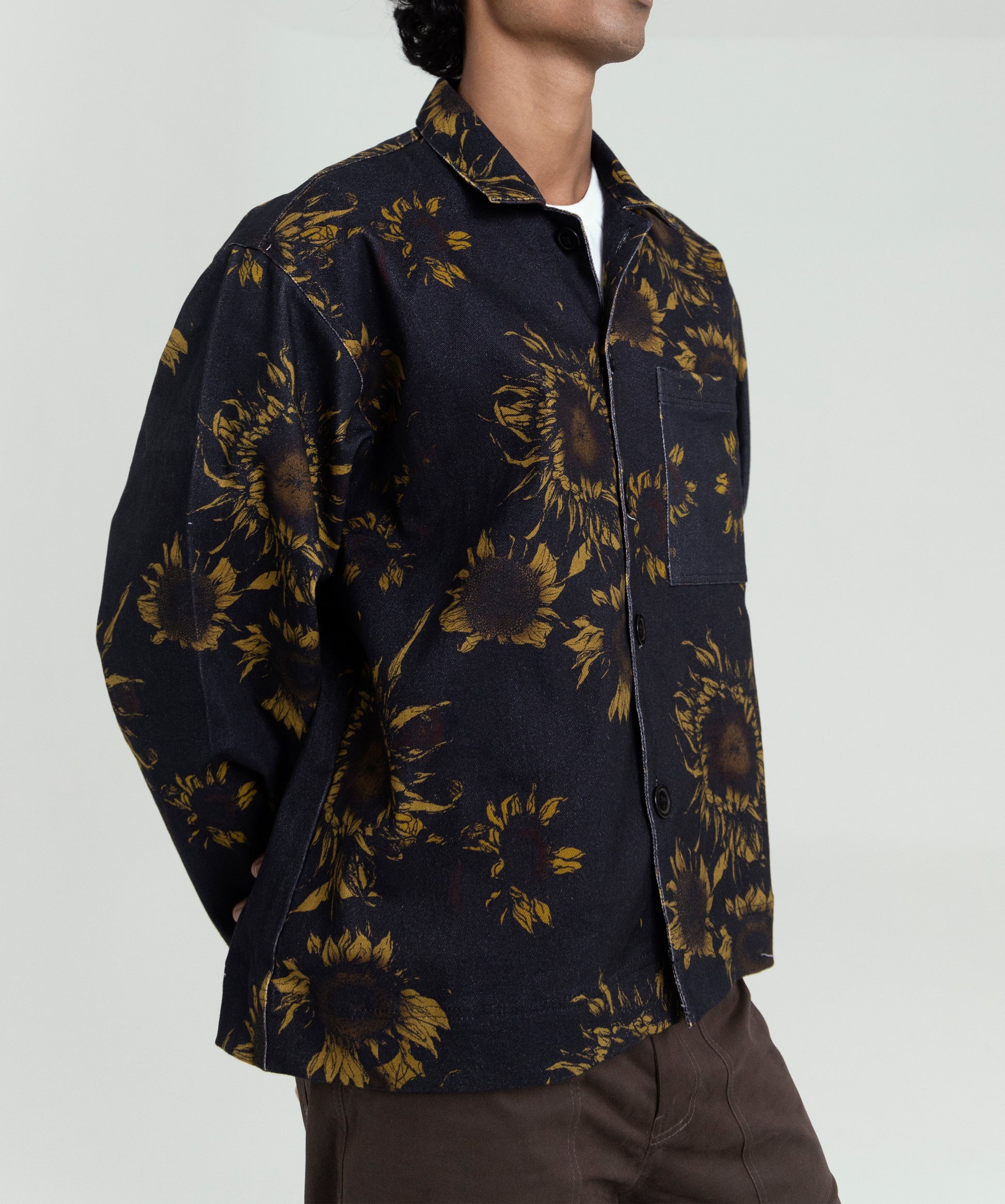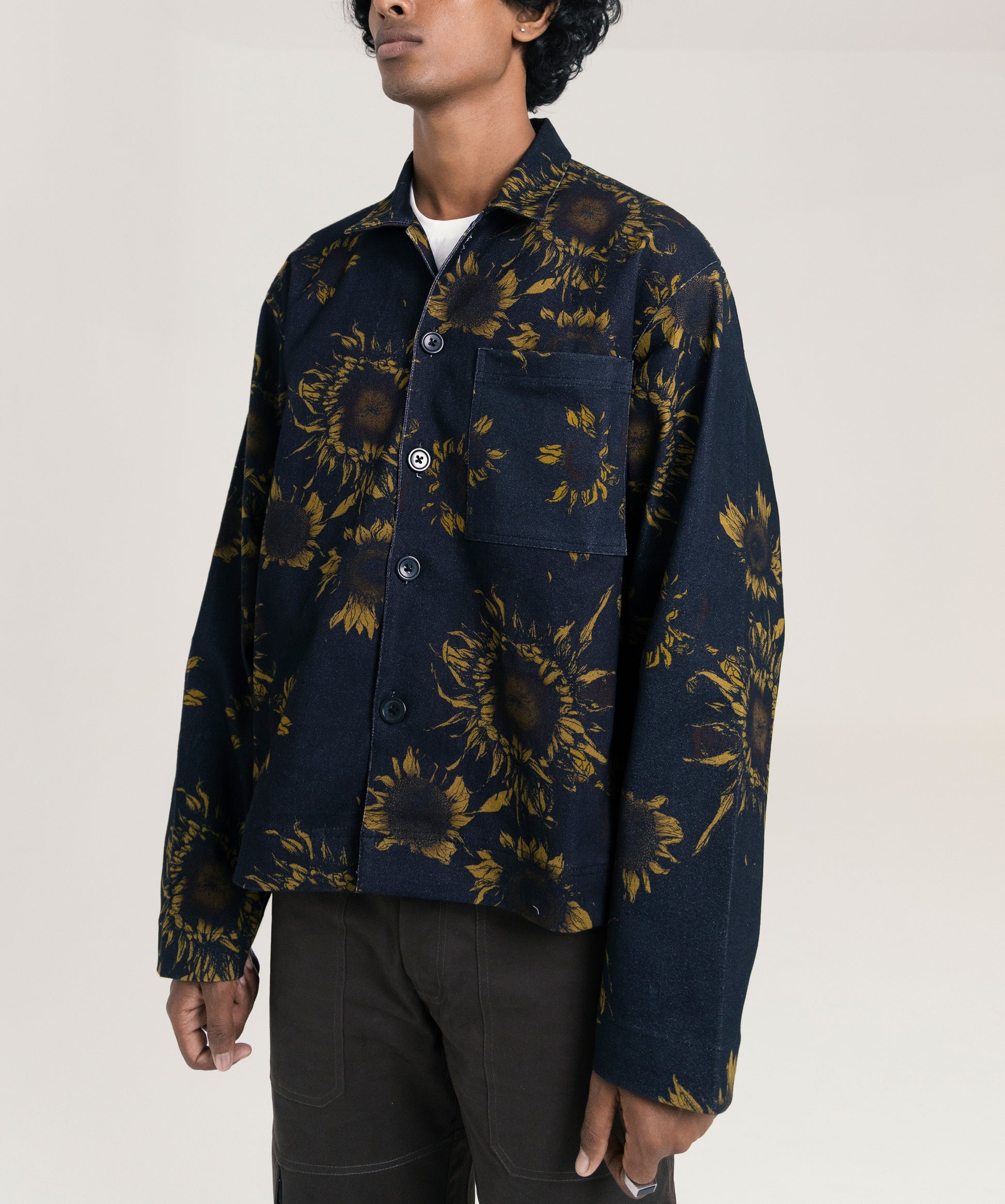 Our expertly crafted denim jacket is made from 100% denim fabric, features digitally printed design. button closure with one patch pocket