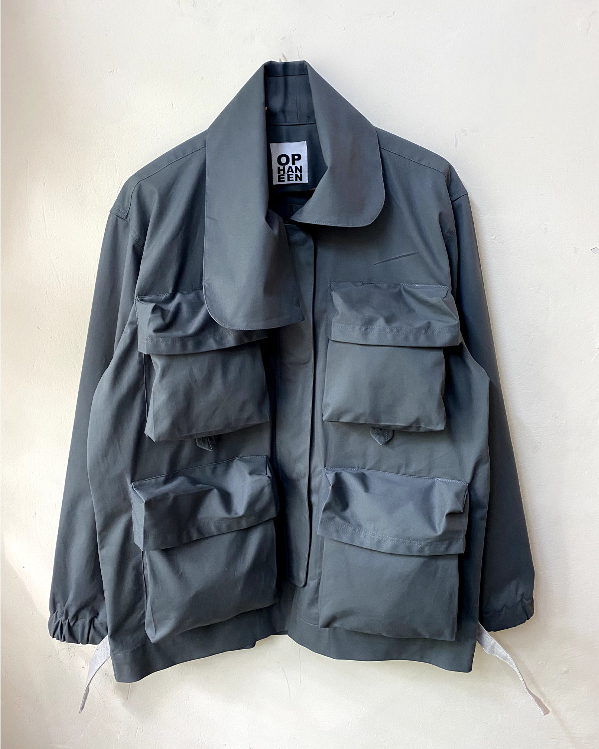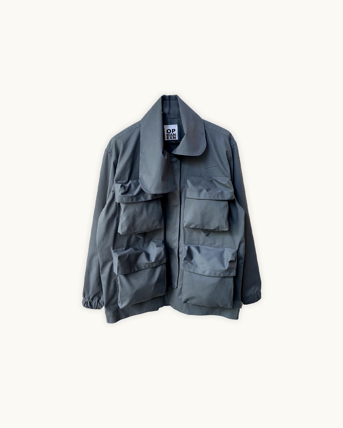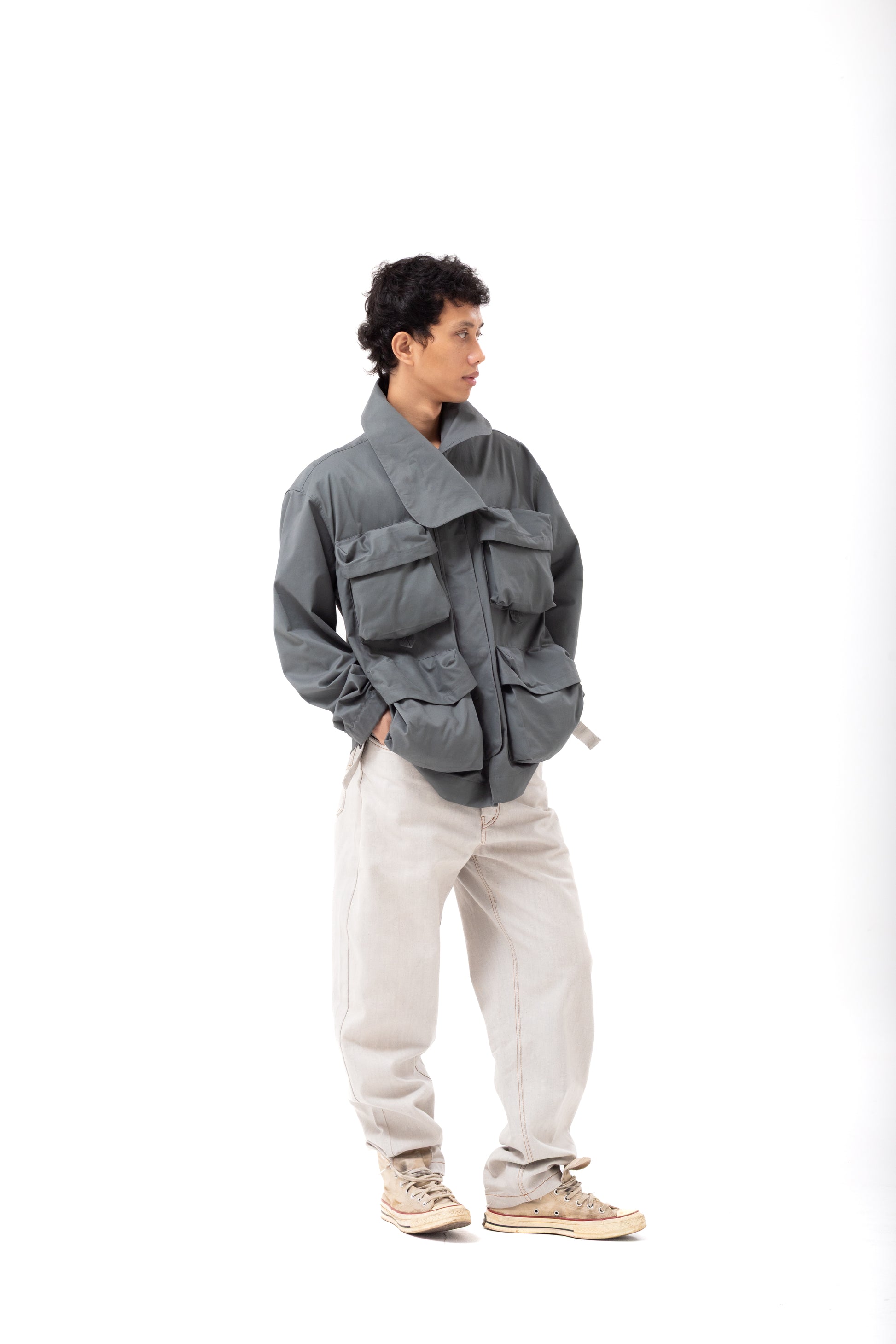 The Carnival Jacket delivers professional-grade functionality with its 100% cotton construction and thoughtful design elements. The modular wrap-around collar adapts to changing conditions while four cargo pockets and dual fabric hooks provide organized storage for keys and essentials. An adjustable elastic hem ensures a secure fit, while the oversized silhouette offers unrestricted movement and contemporary styling.