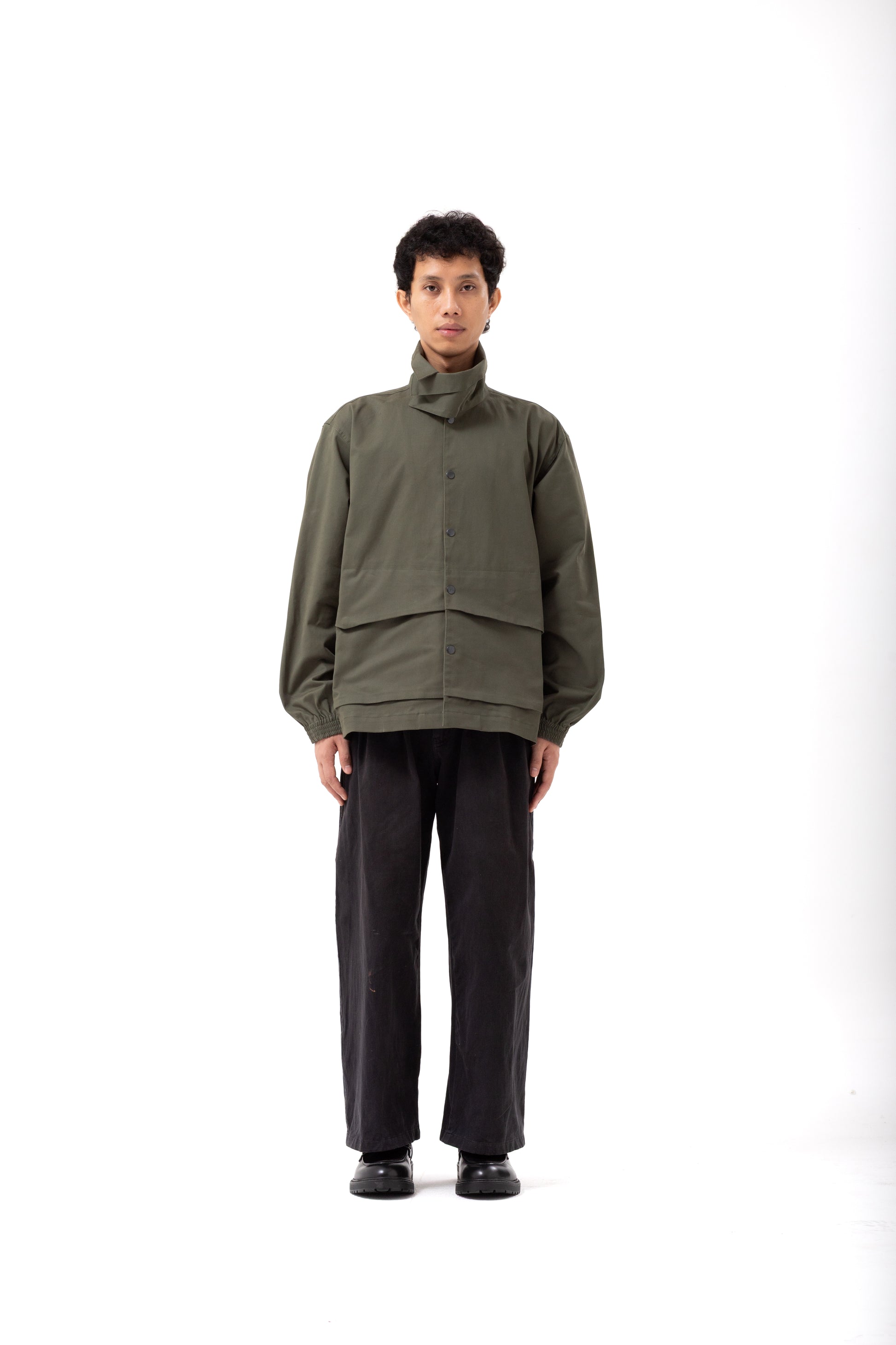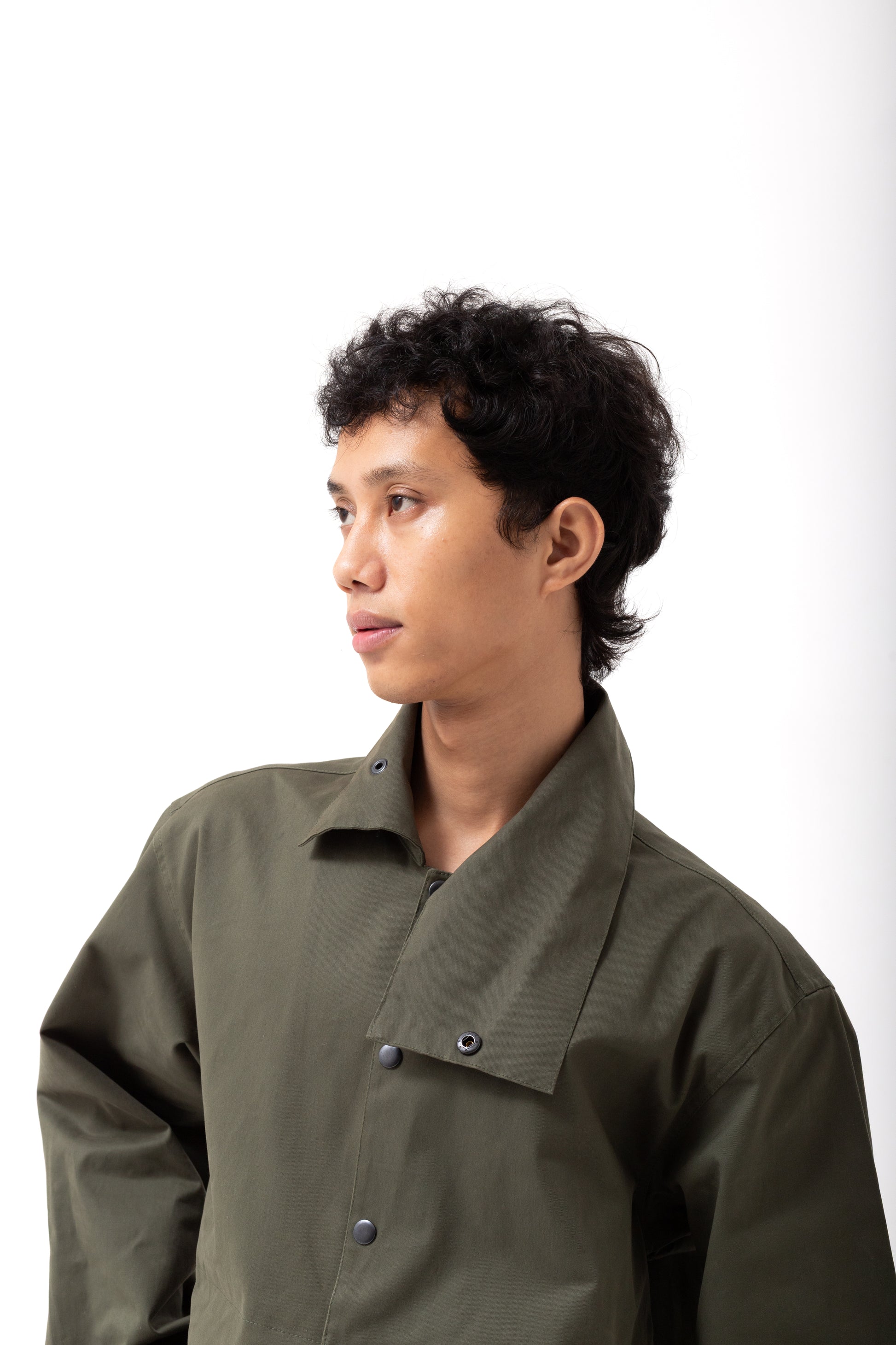 Crafted from 100% cotton twill fabric, this Green General Jacket delivers superior durability with practical functionality. Features include an adjustable collar with secure snap buttons, strategically placed modular cargo pockets with concealed snap closures, and elastic cuffs that ensure optimal fit while preventing drafts. The military-inspired design balances tactical utility with contemporary styling.