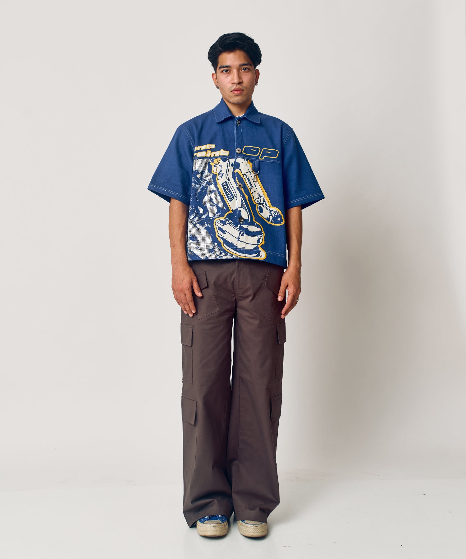 No Saint shirt is made of 100% denim for a warm, comfortable look. The digitally printed fabric ensures a vibrant design, while the boxy fit and metal button closure with an extra utility hook keeps the shirt securely in place. Stay stylish and cozy this winter.