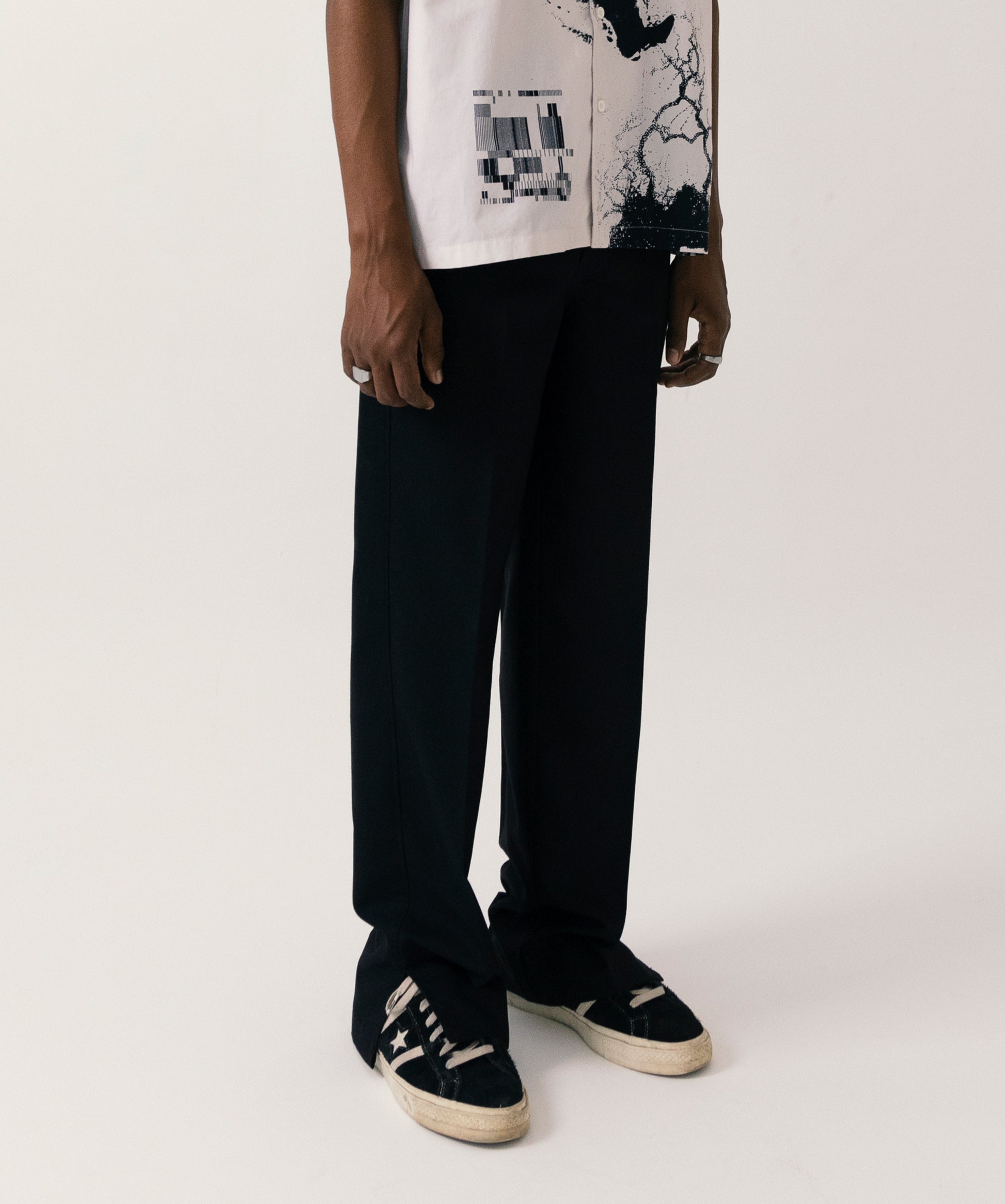 Crafted from premium terry rayon, this piece offers a sleek, tapered silhouette with side slits for added edge and ease of movement.